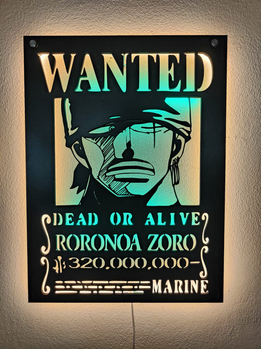 EsauritoQUADRO LED - WANTED ONE PIECE ZORO